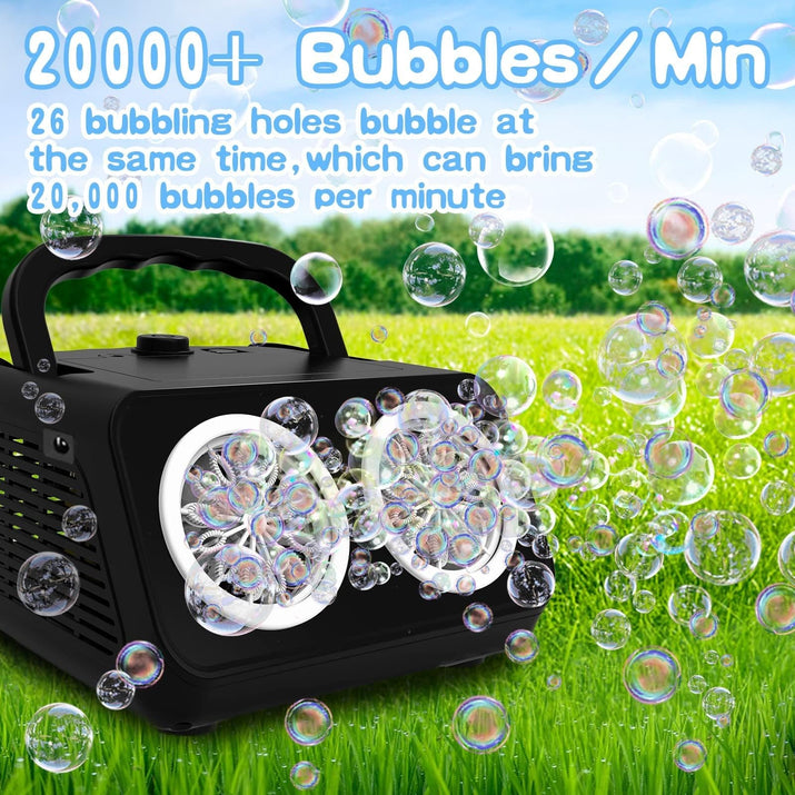 Automatic Bubble Machine, Bubble Blower with 2 Fans 20000+Bubbles Per/Min, Electric Bubble Maker for Kids Toddlers, Operated by Plug-in or Batteries, with 10xBubble Solution, Bubble Toys for Outdoor