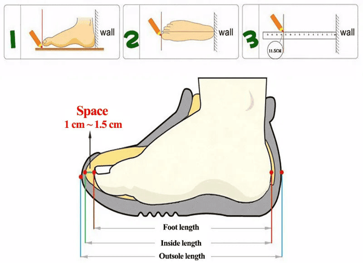 We recommend taking one size larger than the child's foot size indicated in the size list.
