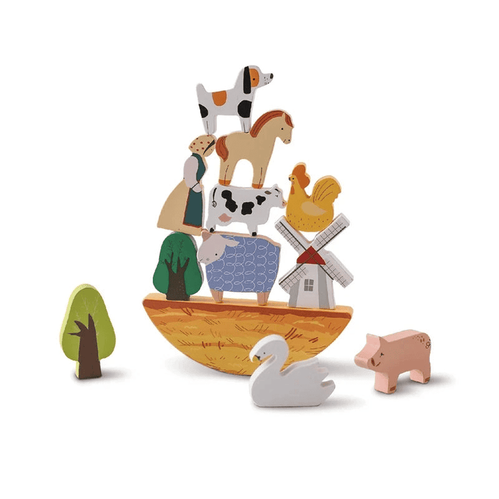 Your child can play at stacking the shapes so that they remain balanced on the curved axis. Once you've finished playing, you can join some of them with a needle and thread so you don't lose them!