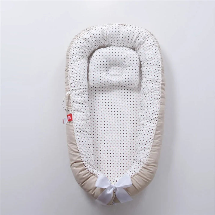 What sets the Babynest apart is its thoughtful design, complete with a plush pillow and cushion, offering an extra layer of comfort for your precious one. From soothing naps to peaceful nights, your baby will love nestling in this snug cocoon, feeling safe and secure wherever they go.