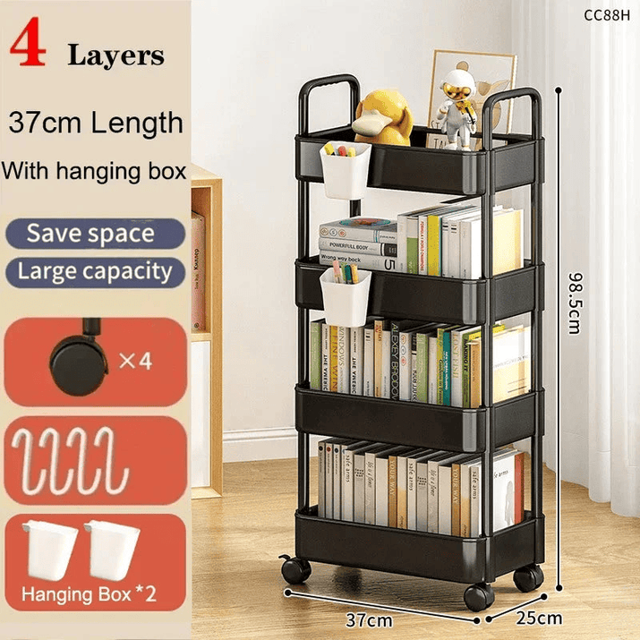 - four-shelves trolley: 10.24 x 14.57 x 38.98"